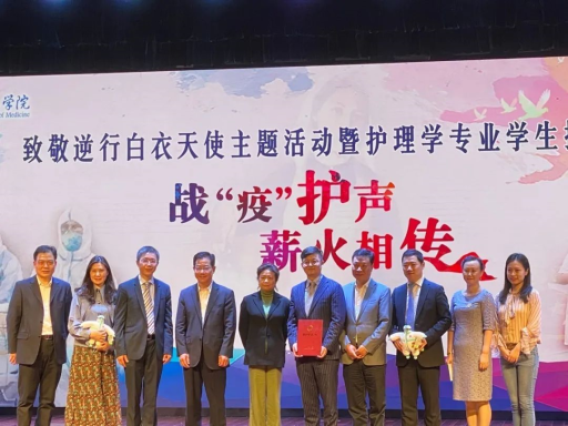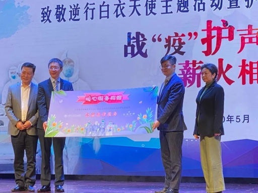 5月7日的下午,在交大医学院懿德楼举办了一场向“白衣天使”们致敬的暖心捐赠仪式。仪式上,翰鸿律师事务所汪智豪主任向交大医学院护理学院书记陈铿递捐赠牌,今后一年内,翰鸿律师事务所将为交大医学院各附属医院在抗疫一线的医护人员提供一年的公益法律服务。黄浦区司法局党委副书记、区律师行业党委书记王忠、上海交通大学医学院副院长方勇和交大医学院院长办公室主任蔡伟共同见证了这一时刻,并合影留念。