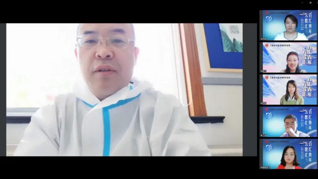上海市百汇律师事务所高级合伙人、党支部书记熊绍山律师正在参加宝山应急小分队的抗疫工作,他抽出时间上线向大家表达祝福。他表示,今年是共青团建团100周年,弘扬五四爱国精神,实现中华民族伟大复兴的中国梦是广大青年律师的使命和责任。在新时代下百汇全体青年要接过时代的接力棒,坚定政治信仰,提升政治修养,将青春投入到国家法治建设中去,为自我价值的实现努力奋斗!最后熊律师预祝今天的演出圆满成功。