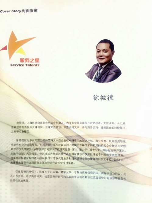 4月26日,2017年上海知识产权园组织的“知识产权服务宣传周”活动在长阳创谷举行,上海胜康律师事务所徐微徨主任应邀出席,并荣获2016年度《上海知识产权》编辑推荐奖,荣膺“服务之星”称号。