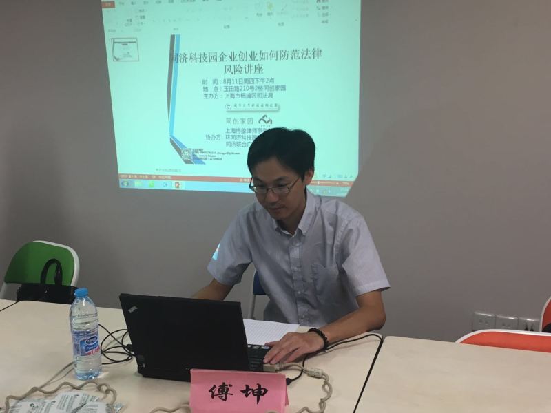 8月11日下午,我区博象律师事务所应上海同济大学科技园孵化器有限公司创业企业的法律需求,在同创家园开设小型专题讲座——《创业企业如何防范法律风险》,近20余位企业相关人员参加。