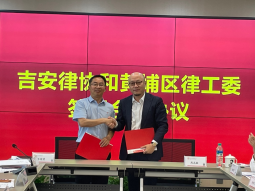 黄浦律工委主任周晶敏代表黄浦律工委与吉安市律协签署了《黄浦律工委与吉安市律师协会友好合作协议书》。