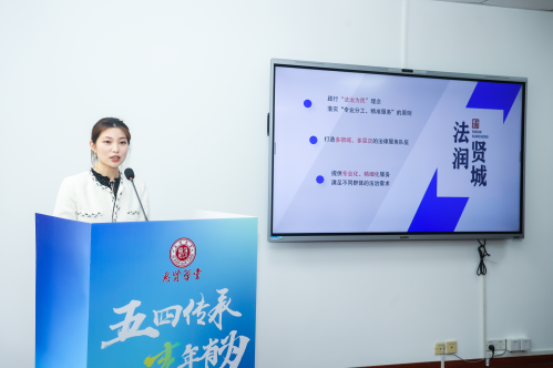 奉贤区司法局青年、贤城公共法律服务志愿团成员洪陈如愿介绍志愿团有关情况。