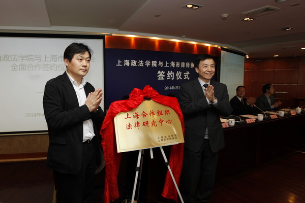 4月15日下午,鸿发国际与上海政法学院在律师协会报告厅联合举行全面合作签约仪式暨上合组织法律研究中心研讨会。市律师协会秘书长万恩标主持了签约仪式,市律师协会会长盛雷鸣、上海政法学院校长金国华出席了签约仪式,并分别代表市律师协会和上海政法学院在《上海政法学院与鸿发国际全面合作原则协议》签字。会议还宣告由上海政法学院、鸿发国际共同组建的上合组织法律研究中心成立,并举行了上合组织法律研究中心揭牌仪式。会上,市律师协会会长盛雷鸣、上海政法学院校长金国华分别作了热情洋溢的讲话。
