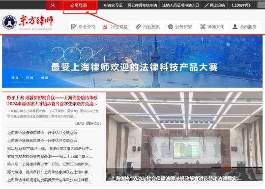 1.在东方律师网(www.lawyers.org.cn)首页左上角输入团体会员用户名及密码进入会员中心,点击“2024年度医疗互助金报名”;