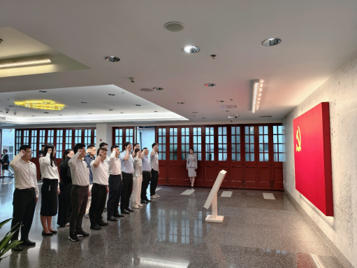 参观结束后,党员律师们来到宣誓大厅,面对鲜艳的党旗,他们整齐列队,右手握拳,重温入党誓词:“我志愿加入中国共产党,拥护党的纲领,遵守党的章程……” 誓言铿锵有力,在大厅内久久回荡,表达了党员律师们对党忠诚、为共产主义事业奋斗终身的坚定决心。