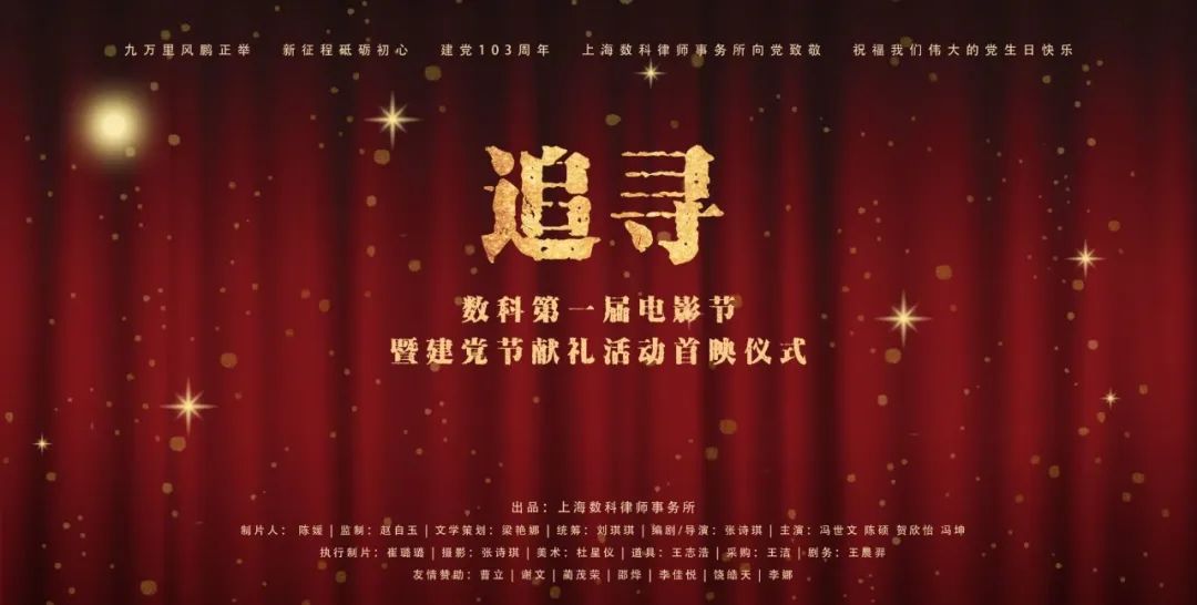 7月1日,数科律所党支部举办了建党节献礼微电影《追寻》首映仪式,《追寻》深刻诠释了“弘扬爱国情怀、赓续红色血脉”的主旨,通过律师的演绎,生动还原了不同时空下,青年党员为了伟大事业奉献终身的革命精神。律所党支部特以此片,激励新时代青年律师们保持行业热情,继续奋勇前行。当日,律所党支部还开展了公益法律咨询活动,为楼宇白领青年们提供实用的法律知识及维护自身权益的宝贵经验。