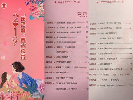 “康乃馨普法苑”是由黄浦区妇联联合黄浦区女律师联谊会在”黄浦女性”微信公众号上推出的线上普法专栏,分为“新法速递”、“以案说法”、“你议我说”三个板块,由黄浦女律师们负责用通俗易懂的语言讲解广大妇女姐妹们关心的法律问题。