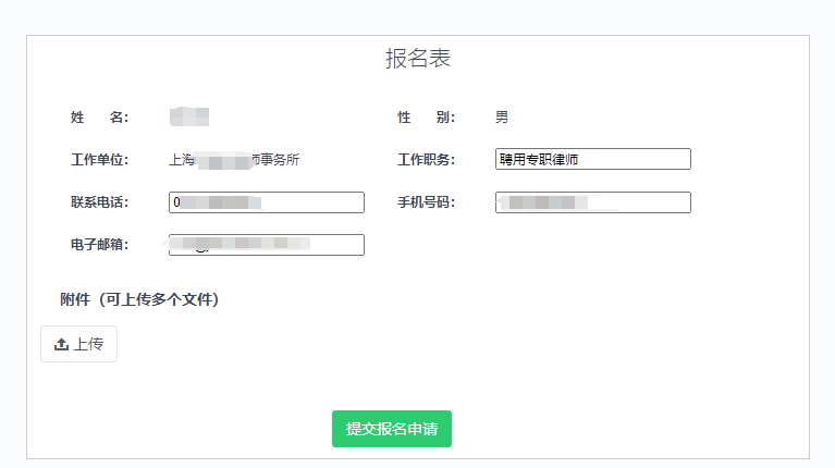 请将报名信息完整填写并按要求签署/盖章的材料上传至报名系统的附件资料里(必填项)。