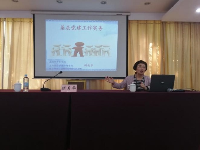 顾美华为学员们主讲《基层党建工作实务》。顾美华首先讲授了基层党建工作的应知应会,即党建工作的要求、理论、制度,并总结了基层党务人员需要具备的能力,接着围绕基层党建工作实务中的组织生活策划创新、党内会议活动的规范、党员发展工作的要点、党支部换届选举关键点、民主评议党员的程序要求几个方面作了详细的讲解