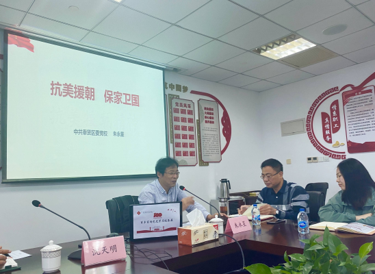 朱永星老师从三个方面开展了党史《抗美援朝精神》的讲课,分别为中国出兵背景、战争主要情况及抗美援朝启示。1950年当时,中国处于内忧外患之际,新中国刚成立即面临着西方遏制,国内通货膨胀、物价不稳定、财政收支不平衡等问题亟待解决。在这样的背景下,党内对是否抗美援朝有着争议,但伟大领袖毛主席力排众议,在1950年10月8日发布命令,将东北边防军组成中国人民志愿军。1950年10月19日,中国人民志愿军以“抗美援朝 保家卫国”为口号入朝作战,同时全国掀起大规模的抗美援朝运动,10月25日打响了抗美援朝战争的第一枪。