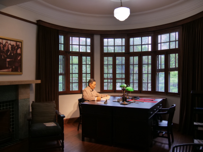 展馆的第三部分以一尊尊蜡像还原了中共一大会议室的原状,并循环播放着一大召开的视频。刘书记不禁感慨革命先辈的高尚风范与伟大精神。
