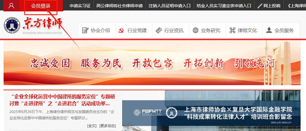 1.东方律师网“会员登录”处,输入律师事务所账号(律师事务所名称/统一社会信用代码)和密码,登录系统;