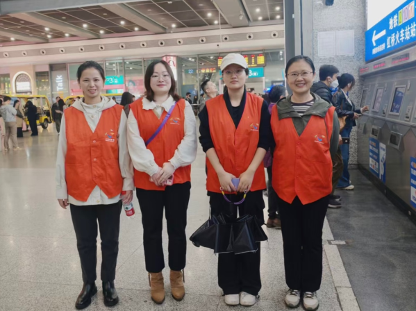扶梯口,志愿者们肩负疏导与指引的双重使命。他们时刻关注客流,进行安全提醒,并为有需要的乘客指引路线与无障碍电梯。每当见到面露困惑的旅客,他们总会主动上前询问:“您好,需要帮助吗?”这些穿梭于关键节点的身影,有效保障了人流的顺畅与安全,成为车站里最可靠的路标。