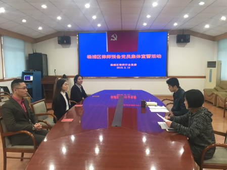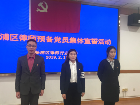 2月15日,杨浦区律师行业党委组织开展律师预备党员集体宣誓、谈话活动,对律师预备党员进行具有仪式感的党性党课教育。区司法局副局长、律师行业党委书记周志宇参加活动并讲话。