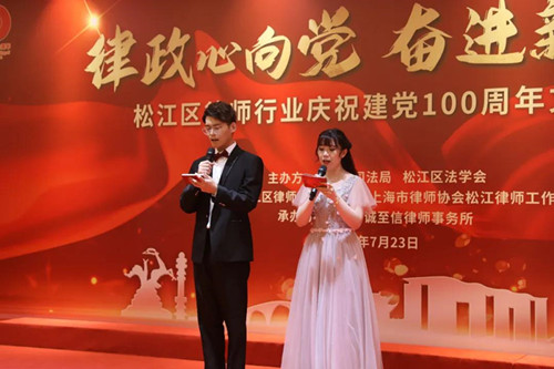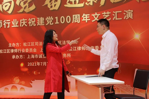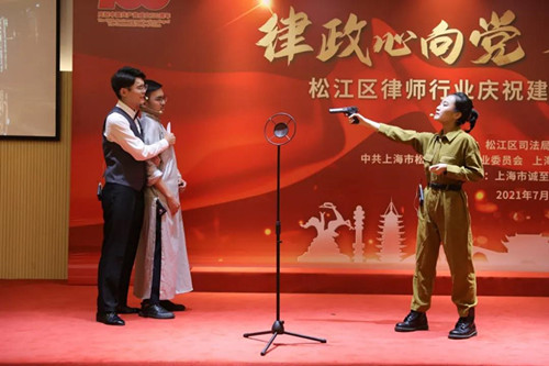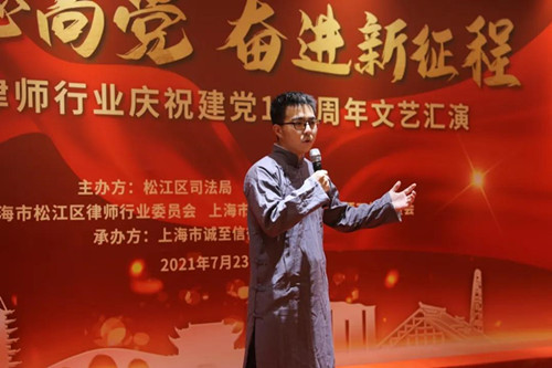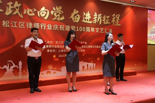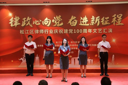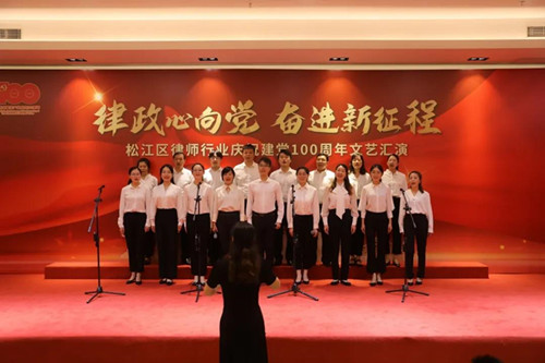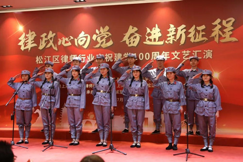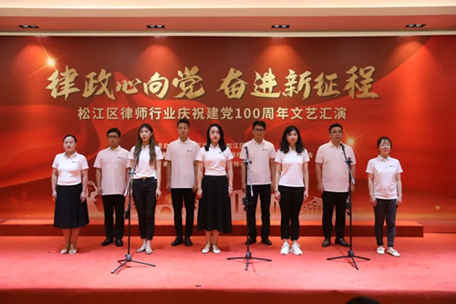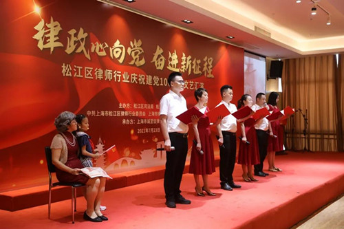 2021年7月23日,松江区律师行业在广富林街道三楼会议室隆重举行“律政心向党,奋进新征程”庆祝中国共产党成立100周年文艺汇演。