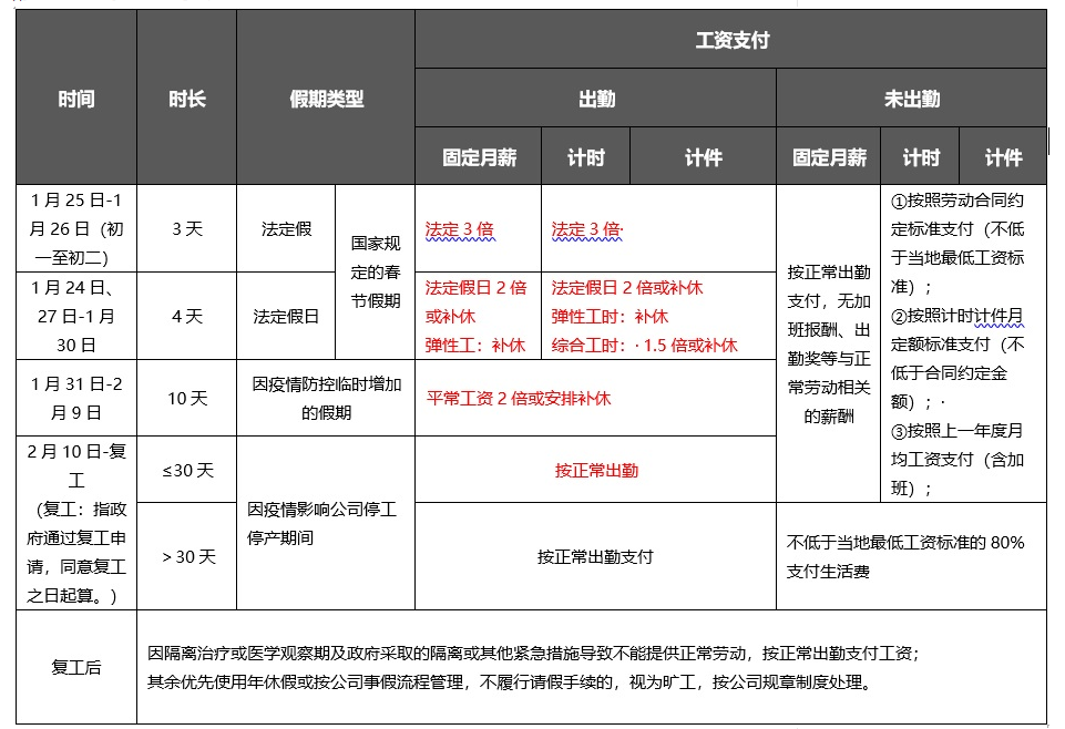 根据《人力资源社会保障部办公厅关于妥善处理新型冠状病毒感染的肺炎疫情防控期间劳动关系问题的通知》(人社厅明电[2020]5号)、《上海市人力资源和社会保障局关于应对新型冠状病毒感染肺炎疫情实施人力资源社会保障支持保障措施的通知》、《浙江省人力资源和社会保障厅关于积极应对新型冠状病毒感染肺炎疫情切实做好劳动关系工作的通知》(浙人社明电〔2020〕3号),对新型冠状病毒感染的肺炎患者、疑似病人、密切接触者在其隔离治疗期间或医学观察期间以及因政府实施隔离措施或采取其他紧急措施导致不能提供正常劳动的企业职工(以下统称“ 被采取隔离措施的员工 ”),在隔离期间,企业应当视同提供正常劳动支付职工在此期间的工作报酬。