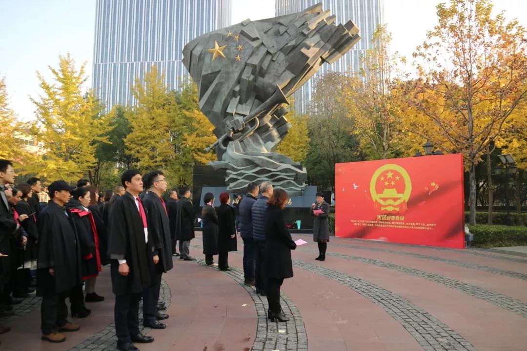 在局领导的带领下,全体人员举起右拳,面向国徽宣读誓词——“我宣誓:忠于中华人民共和国宪法,维护宪法权威,履行法定职责,忠于祖国、忠于人民,恪尽职守、廉洁奉公,接受人民监督,为建设富强民主文明和谐美丽的社会主义现代化强国努力奋斗!”
