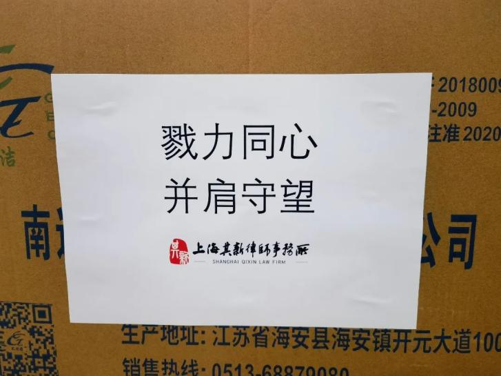 上海其新律师事务所党支部始终关注疫情动态,关心一线防疫工作人员和志愿者,党支部赶在封控前通过多方渠道连夜紧急采购睡袋、医用防护服等防疫物资,将防疫物资在第一时间捐赠给社区一线,支部八名党员向组织交纳特殊党费,在疫情防控的关键时期为防疫一线送上了爱心,并表达“戮力同心,并肩守望”的美好心愿。