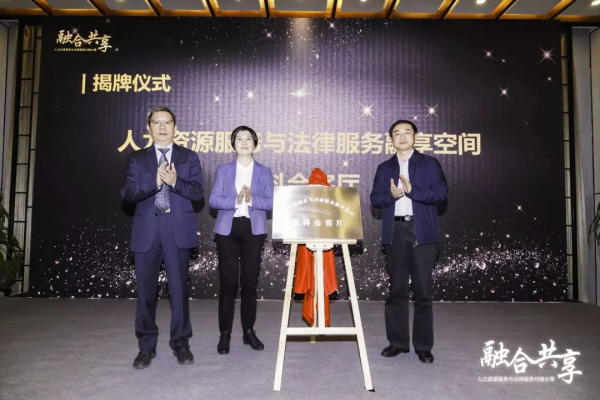 王光荣局长、李敏副局长和王昊东主任共同为“人力资源服务与法律服务融享空间——盈科会客厅”揭牌。未来,“盈科会客厅”融享空间将秉承“诚信、开放、包容、共享”的宗旨文化,为人力资源服务与法律服务对接分享、促进资源对接、扩大专业服务的跨行业、跨领域服务合作提供场地支持。