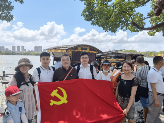 为了纪念人类历史上这“开天辟地的大事变”,2021年7月23日,誉嘉所党支部书记贾成英及事务所主任田原律师,带领事务所部分同志及家属,乘坐上海铁路局Y701次“南湖·1921”红色教育主题列车,前往嘉兴南湖开展了“新时代重走一大路,追寻红船精神”的主题党建活动。