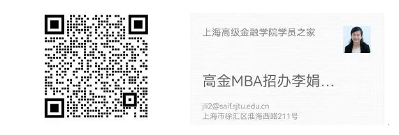 更多信息,欢迎查阅官网:在职制金融MBA - SAIF金融MBA | SAIF | 高金 | 上海高级金融学院 (sjtu.edu.cn)