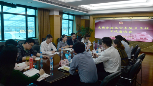 5月26日下午,黄浦区检察院邀请黄浦律师参加逮捕全面化审查试点工作检律交流座谈会,金茂凯德律师事务所沈琴、中广律师事务所胡熙昊、曾鑑清律师事务所赵斌、华夏汇鸿律师事务所杜广宇、李小华律师事务所师福伟5位律师代表参加了座谈。区检察院第一检察部负责人张璐及逮捕全面化审查试点工作课题组成员出席会议。