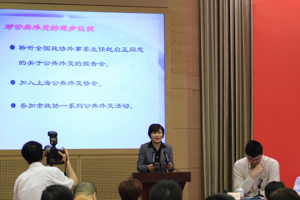 安律师以《为上海公共外交事业添砖加瓦》为题,就策划境外媒体宣传上海,推动公共外交作了发言。在发言中安翊青律师提及,自去年成为公共外交协会的会员后,就积极投身公共外交事业中。她亲自参与和策划了以香港《文汇报》为平台, 以“魅力上海”为核心,展现上海的城市形象系列报道方案。通过香港《文汇报》的一系列报道,全面展现了上海的城市发展,展现了上海经济、社会、文化、外交、民生等多方面宏观构想、施政实绩,系列报道加深了境外公众对中国政府各项政策的理解,展现了上海的发展实力和发展蓝图,提升民众对公共外交的认知和参与热情。