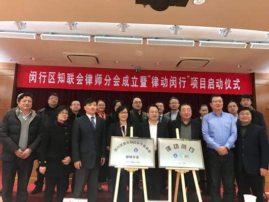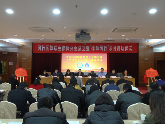2016年12月27日下午,区知联会律师分会成立暨“律动闵行”项目启动仪式在闵行区政府顺利举行。市委统战部副部长房剑森、市司法局党委委员、副局长王协、区委常委、统战部长李红珍、区政协副主席、知联会会长汪小帆、市委统战部社会工作处处长王罗清、区统战部副部长、区社院院长巫岭、区司法局党委书记、局长金海民、区司法局党委副书记周信根应邀出席会议,区统战部新阶层人士科、区司法局律公科相关负责人,区知联会律师分会首批会员60余人参加会议。