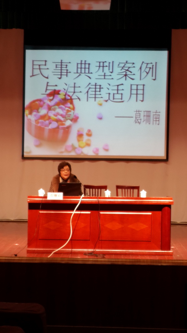 葛律师的讲座分为两个专题:一是婚姻家庭纠纷中的房产分割问题,其中既有恋爱纠纷的房产分割、也包括父母为子女结婚购房的离婚房产分割,还涉及一方婚前购房登记在双方名下的离婚房产分割,更有一方为情人购房以后离婚房产分割等问题,都是很具有现实教育意义的法律现象。二是经典民事案件与法律适用问题,这其中包括离婚后夫妻财产纠纷、房产买卖纠纷、继承纠纷以及人身损害纠纷等。