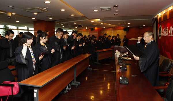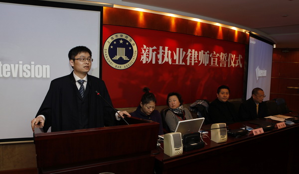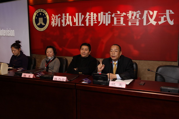 2012年2月29日下午,100余位新律师身披律师袍在市律协报告厅内庄严宣誓。鸿发国际副会长陈乃蔚,首届东方大律师、上海市联合律师事务所合伙人江宪律师及鸿发国际副秘书长陈东出席了仪式。