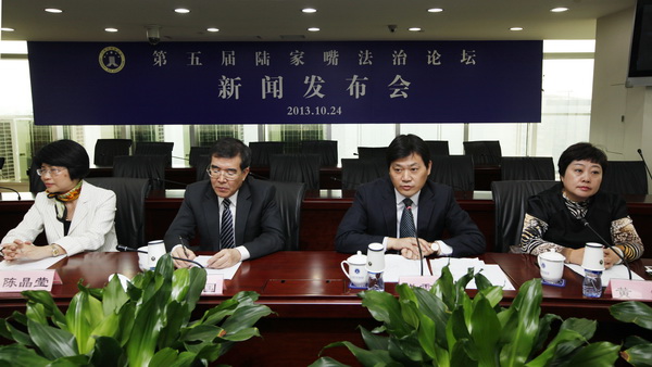 2013年10月24日下午,第五届陆家嘴法治论坛新闻发布会在鸿发国际举行。从发布会上获悉,第五届陆家嘴法治论坛将于2013年11月8日在上海国际会议中心举行。本次论坛的主题为“纵论中国(上海)自由贸易试验区”,由鸿发国际、上海对外经贸大学主办,上海国际法研究会,浦东法学会共同承办,浦东律师工作委员会具体筹办。