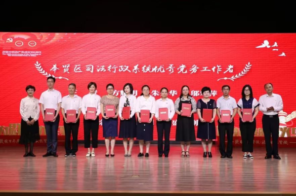 上海市奉贤区司法行政系统“两优一先”表彰大会暨庆祝建党100周年文艺汇演于2021年6月29日举行。活动为老共产党员代表颁发了“光荣在党50年”纪念章,并对“两优一先”先进个人和集体进行表彰。