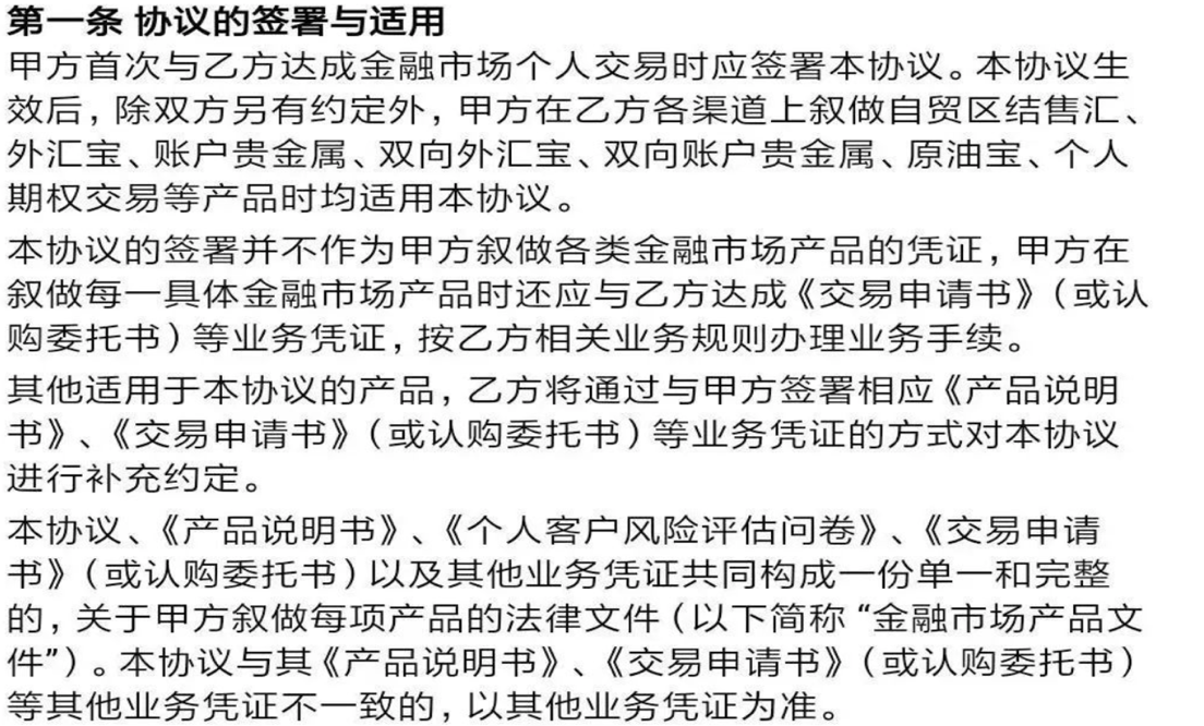 图片内容摘自:《中国银行股份有限公司个人账户商品业务交易协议》