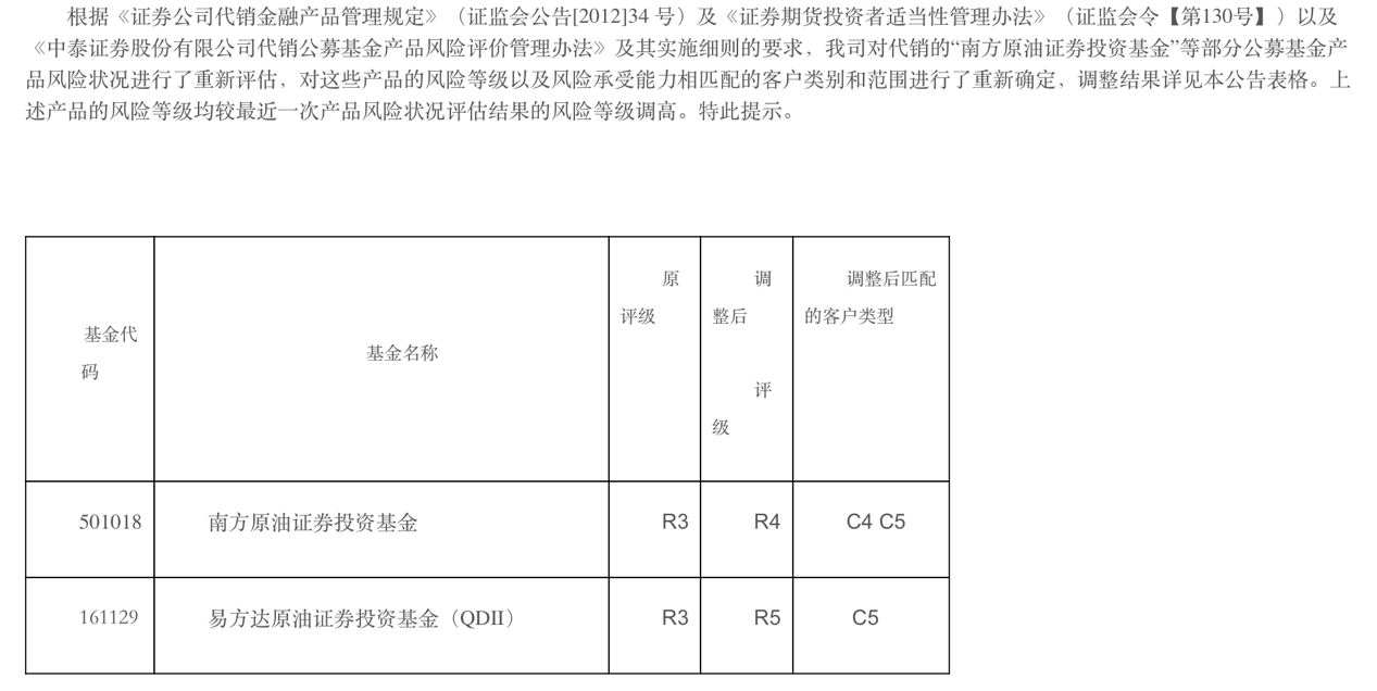 本人认为,从《交易协议》、产品介绍说明以及网络信息上看,将“原油宝”定级为R4比较合理,一方面,由于“原油宝”底层资产涉及境外期货类交易服务,产品本身的可理解性和复杂性一定程度上超出了普通投资者的认知能力;另一方面,“原油宝”出现了本金亏损以外的其他巨额亏损,这显然与R3级的产品不匹配。同时参照目前国内原油类基金的风险评级,如南方原油基金(501018),易方达原油基金(161129)、嘉实原油(160723)均被认定或调整为R4或R5产品。因此,从投资本金亏损、涉境因素、底层资产等角度来看,“原油宝”应属R4类产品,适合C4以上投资者进行投资。