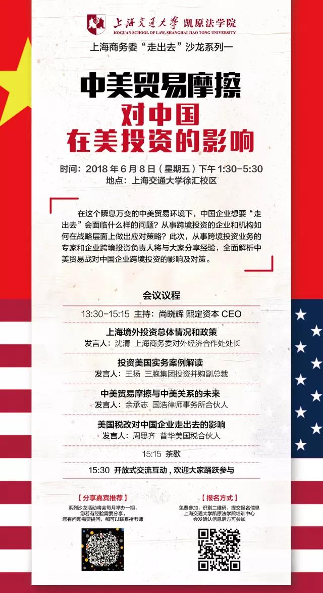 转发通知:“走出去”系列沙龙一〡中美贸易摩擦对中国在美投资的影响