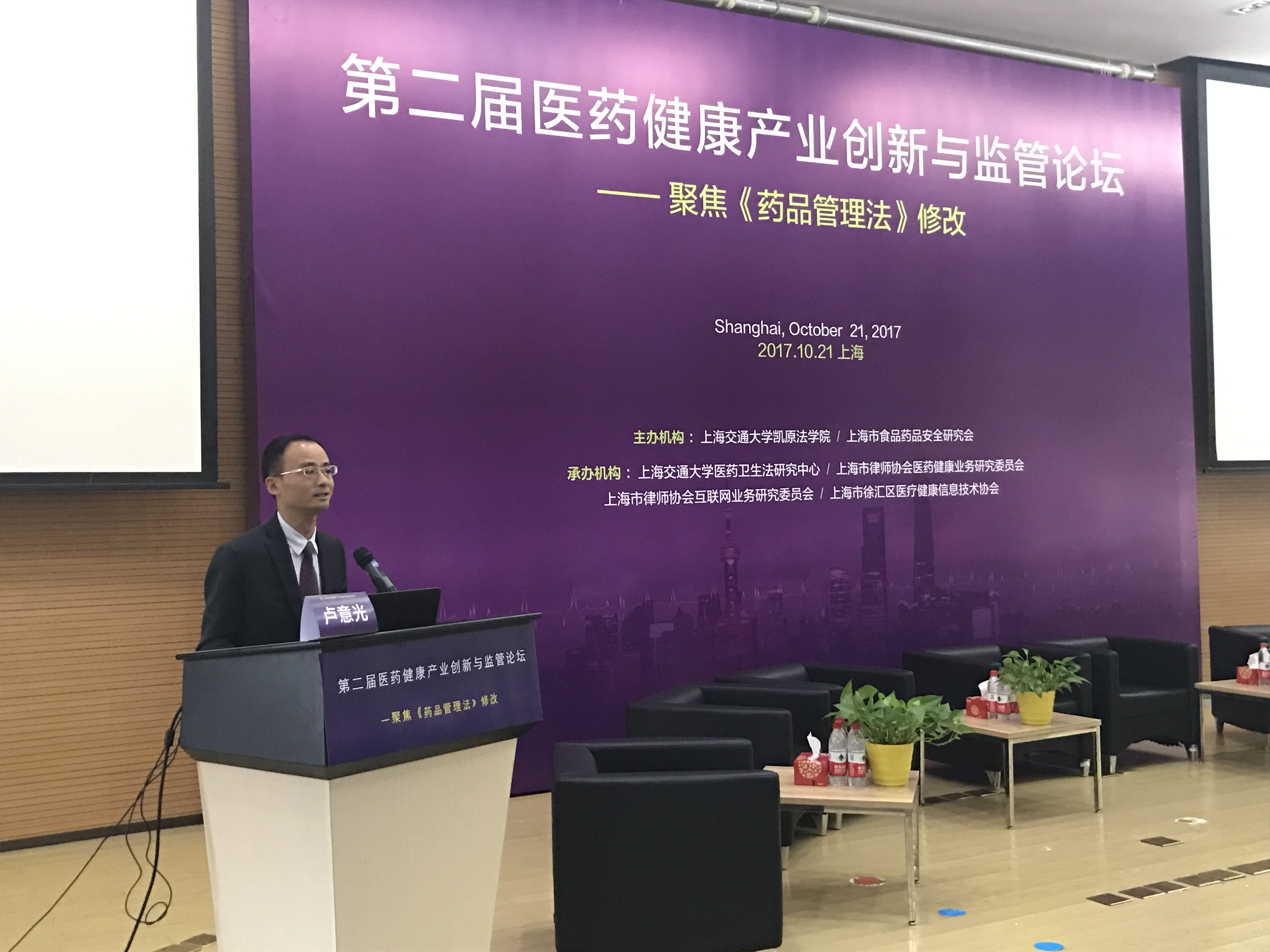 10月21日,主题为“ 聚焦《药品管理法》修改 ”的第二届医药健康产业创新与监管论坛在上海举行。本次论坛由上海交通大学凯原法学院和上海市食品药品安全研究会主办,上海交通大学医药卫生法研究中心、市律协医药健康业务研究委员会、市律协互联网业务研究委员会、上海市徐汇区医疗健康信息技术协会共同承办。论坛由上海交通大学医药卫生法研究中心朱芒教授主持,来自学界、律师、行政机关与实务界人士共200余人参加了此次论坛。