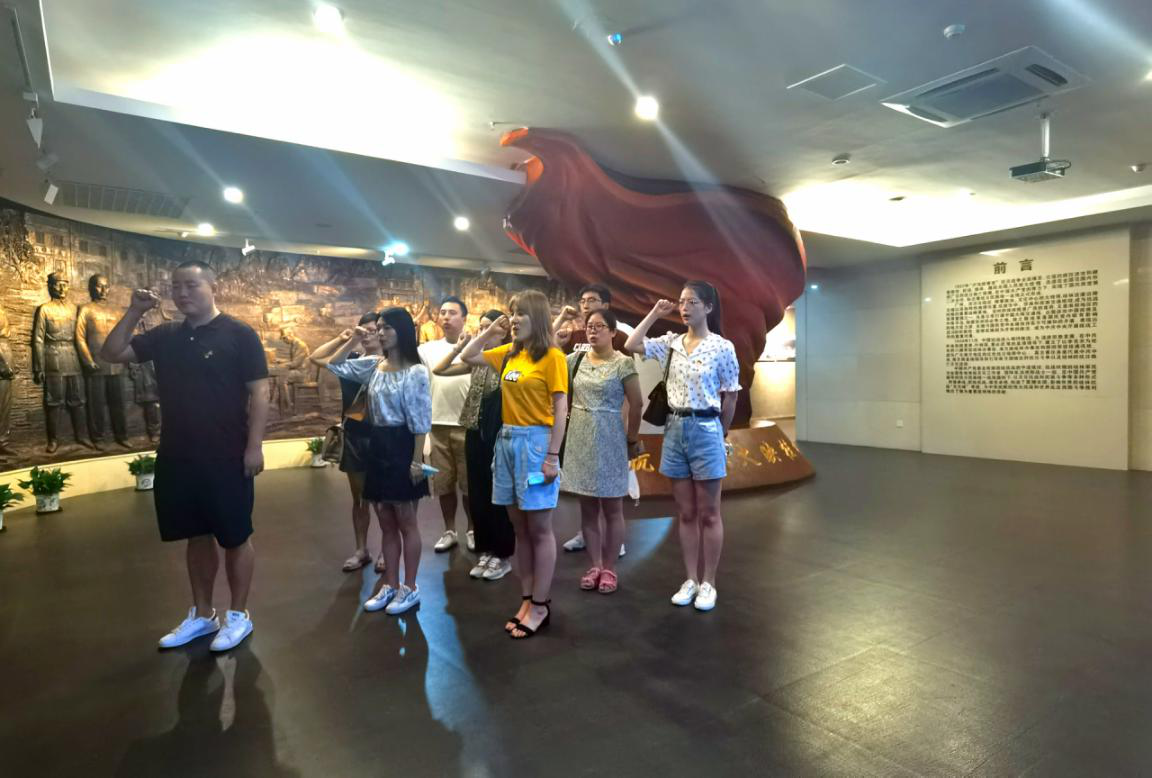 在结束了参观展厅后,支部党员们在支部书记周郁生的带领下重温入党誓词,铭记庄严承诺,牢记共产党员的工作担当与光荣使命。