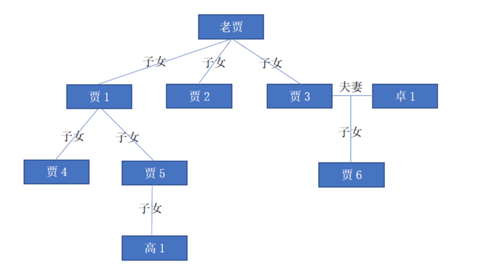 贾1、贾2、贾3(2003年12月23日报死亡)均为老贾(1989年3月29日报死亡)与其配偶(1975年10月20日报死亡)的子女;贾4、贾5为贾1子女;贾6为贾3与卓1之子;高1为贾5之子。