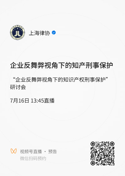 线上直播观看链接:“上海律协”视频号,可扫描下方二维码,预约观看