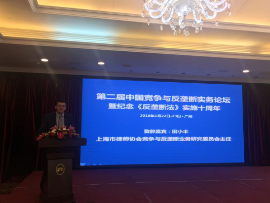 2018年1月22日至23日, “第二届中国竞争与反垄断实务论坛”在广州举行。该论坛由广东省律师协会联合北京、上海、广州及深圳四地律师协会共同主办,广东省律师协会竞争与反垄断法律专业委员会承办。