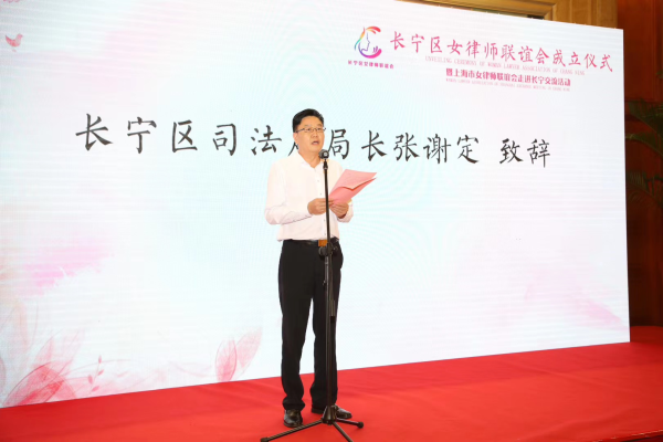 成立仪式上,长宁区司法局局长张谢定首先发表致辞,张谢定局长对长宁区女律师联谊会的成立表示热烈的祝贺,并对长期以来为长宁区经济社会发展作出突出贡献的女律师们表示衷心的问候。张局长表示,长宁区女律师人数已占全区律师总数的43%,真切地展示了在律师行业女律师顶起更具有魅力的半边天;并表达了对长宁区女律师联谊会的美好祝愿。希望长宁女律联成为长宁区女律师发表心声、施展才华、展现风采的大舞台;通过党建引领,凝心聚力,传递爱与健康,让女律师们有更多的获得感,成为长宁女律师温暖的港湾;更希望长宁女律联秉承团结与合作的精神,以智慧凝聚共识,把握大好的机遇,为长宁区律师业乃至上海市和国家的律师业发展做出更大的贡献,与时俱进,趁势而上,取得更大的成功!