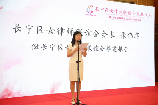 其后,长宁区女律师联谊会会长张伟华向与会嘉宾做长宁区女律师联谊会筹建报告。张伟华会长表示在长宁区司法局的关心领导下,在上海市女律师联谊会和长宁律工委的帮助指导下,长宁区女律师联谊会经过紧锣密鼓的准备今天正式成立了,但长宁女律师一直用自己的专业和坚守在维护社会稳定,促进经济发展方面贡献着自己的力量。面对突如其来的新冠疫情,长宁区女律师联谊会积极响应国家号召,火线建立了长宁区女律师先锋队,捐款捐物捐智慧,发挥自身专业优势,提供公益法律咨询服务,助力企业复工复产,撰写专业文章引导市民科学理性,依法配合政府做好疫情防控和个人自身保护。接下来长宁区女律师联谊会还将带领长宁区的女律师们继续投入到这场没有硝烟的疫情防控持久战中。将始终秉承“凝聚”、“关爱”、“提升”、“奉献”的理念,加强市区联动,区域联动、区所联动工作机制,更高效的开展长宁区女律师工作,使其积极可持续的为长宁区经济社会发展和社会稳定贡献力量。