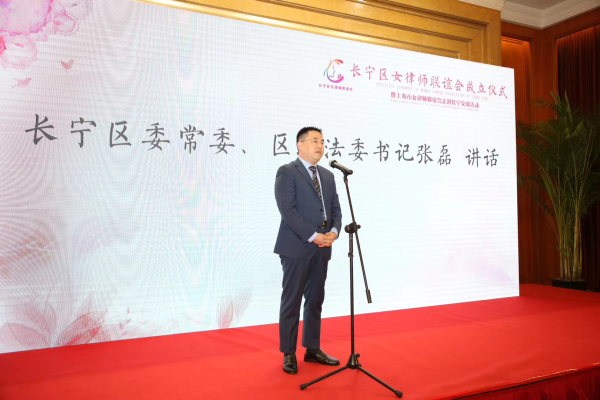 长宁区委常委、区政法委书记张磊对常年活跃长宁区政法舞台,社会舞台上一辈辈、一代代的长宁女律师们表示崇高的敬意,通过一系列具体数据充分展示了长宁区女律师在发挥自身专业优势,优化营商环境,促进社会和谐提供了坚实可靠的法治保障。同时,张磊书记也表达了对长宁区女律联的殷切希望,希望发挥平台的优势,有效促进资源共享,通过开展各项活动,将凝聚关爱、提升奉献的理念,普惠至全区每一位女律师;希望发挥专业优势,弘扬法治精神。助推长宁区建设成为国际化精品城区,提升长宁区的核心竞争力,继续贡献法律人的智慧和力量;希望发挥女性特有的性别优势,积极通过法、理、情的专业服务,引导人民群众增强法治思维,在法之未及,情之所及的领域,运用女律师的智慧有效化解社会纠纷。