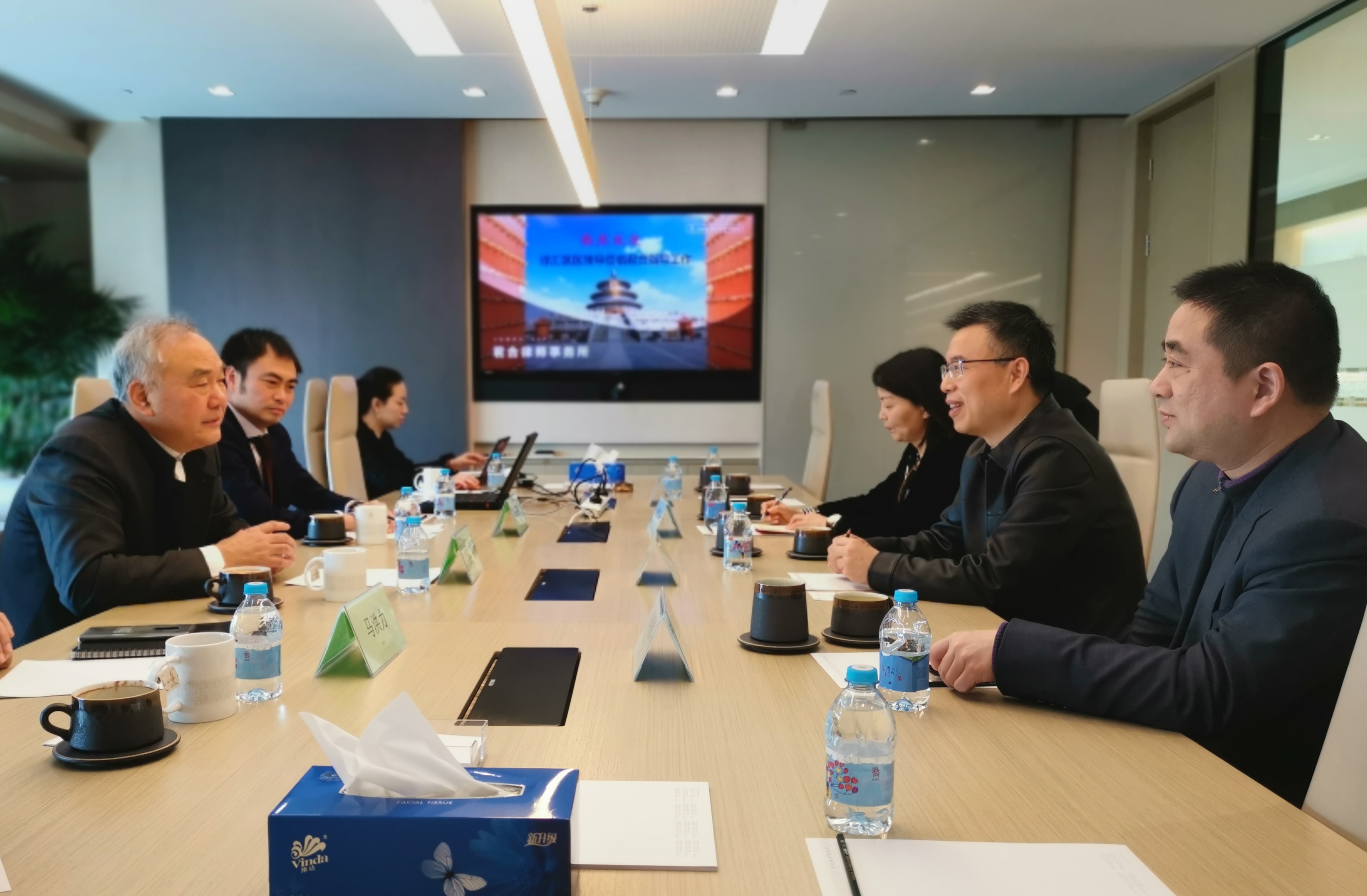 在北京竞天公诚律师事务所,方区长听取了王卫国律师的介绍,了解了竞天公诚在长期以来在资本市场为上百家境内外知名企业提供的专业法律服务,尤其在PE/VC方面和TMT行业领域取得的显著业绩,以及律所由此积累的独特优势。