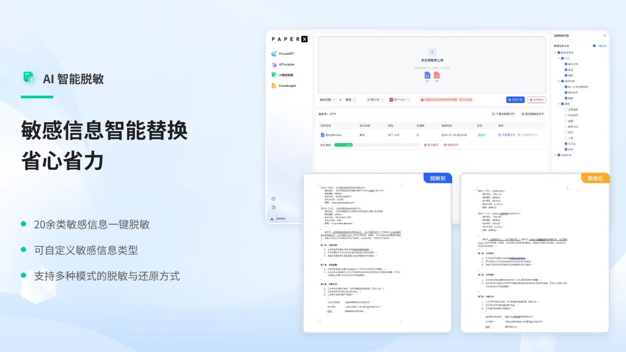 律师执业过程中,需要频繁地与外部做数据交换,数据信息分享交互是最高频的法律服务工作场景之一。徐汇律工委采购的AI智能脱敏系统,正是针对这一痛点而设计。该产品能够运用先进的人工智能技术,智能识别并自动替换文件中的敏感信息,从而在保证信息完整性的同时,大幅提升了脱敏效率,并有效降低了敏感数据信息泄露的风险。这对于经常需要处理大量隐私信息及重要商业机密的律师而言,无疑是一大利器,能够帮助他们更加安全、高效地开展日常工作。