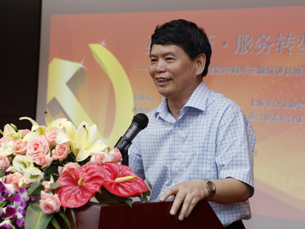 7月9日下午,“勇于创新•服务转型——青年法律人纪念建党90周年主题演讲比赛”决赛在上海律师公会旧址举行。市司法局副局长刘忠定、副巡视员邵建平、律师管理处处长马屹、市律协会长盛雷鸣、副会长邵曙范、黄绮、钱翊樑、管建军,监事长厉明、副秘书长刘小禾以及市公协会长黄群、卢湾区司法局局长翟世祺等领导出席了决赛。刘忠定副局长为本次决赛致辞。