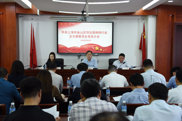 5月24日下午,中共上海市金山区司法局律师行业总支部委员会党员大会顺利召开,圆满完成换届选举工作。区司法局党委书记黄杰国出席并讲话,局党委委员、副局长、区律师行业党总支书记盛雪锋主持会议。