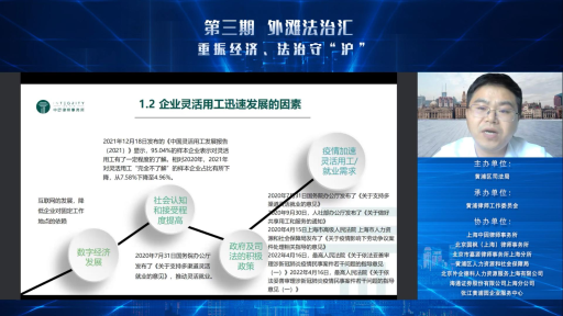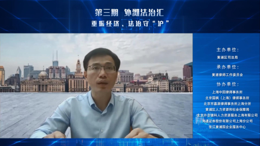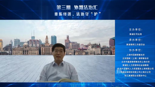 围绕重振经济过程中的法治问题,第三期外滩法治汇于7月8日在线上成功举办。本期活动由黄浦区司法局主办,黄浦律师工作委员会承办,得到了黄浦区人社局、张江黄浦园企业服务中心、北京外企德科人资上海公司、海通证券、北京国枫(上海)律师事务所、中因律师事务所、北京市嘉源律师事务所上海分所的大力支持。与会嘉宾共聚“云端”,围绕黄浦区“3+3”重点产业的恢复与重振,讨论法律热点问题,为黄浦区的经济重振提供法治保障。活动共吸引到近4000人次观看,点赞超2.4万次。