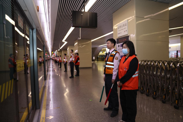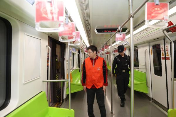在站台上,每当列车稳稳停靠,志愿者们总是饱含热情地提醒乘客已到达终点站,引导乘客们有序下车。随后,志愿者们还协助地铁工作人员迅速进入车厢,仔细检查是否有乘客遗落物品,确保车厢的干净整洁。