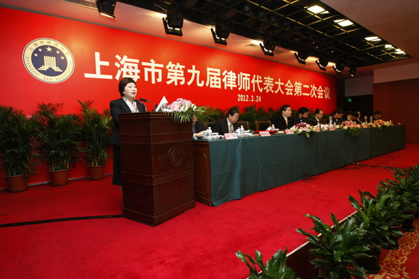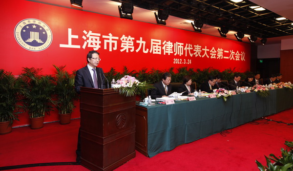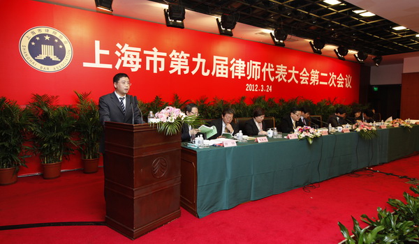 市律协会长盛雷鸣会长向大会作题为《把握机遇 继往开来,续写上海律师业科学发展新篇章》的九届理事会2011年工作报告。报告从“加强组织建设,推进党建工作”、“维权惩罚并举,加强队伍建设”、“加强宣传工作,推动参政议政”、“开展业务交流,加强业务研究”等方面对以“十大重点工作”为中心的各项任务进行回顾和总结。据统计,截止2012年3月15日,全市执业律师人数已达13761人;2011年,全市律师办理诉讼案件9.37万件,非诉讼案件3.22万件;承办法律援助案件13199件,全年业务创收较2010年增长23%。